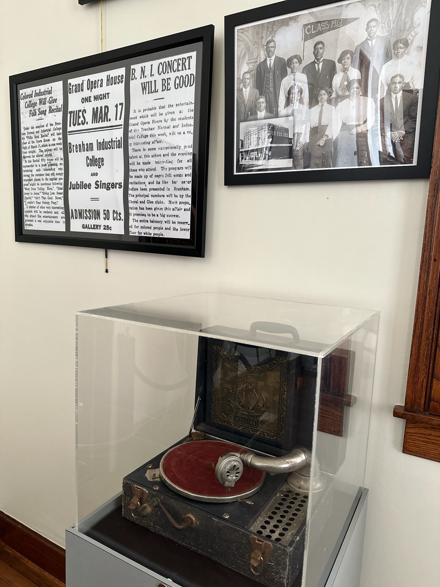 The Brenham Heritage Museum’s Juneteenth exhibit, “The Music, the Melody, the Message: Evolution of African American Music Featuring Artists from Washington County” explores African American music’s evolution from Africa to Texas, onto the national stage and beyond. The exhibition brings together photos, artifacts, and articles to showcase the work of talented Black musicians with Brenham roots. This exhibition was made possible by the Museum’s African American Content Committee.